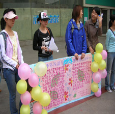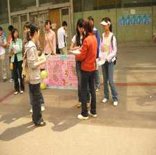 此次活动,中心采取的是与以往不同的模式——中心全体成员共同走出校园直接触社会。按计划宣传活动分成上午、下午两个部分,5月20日上午,由副主任夏菲繁、宣传部长吴丽丽、外联部部长徐晓娜带领 14名成员进行家教宣传,下午由主任张瑶、管理部长梁琦带领13名成员完成任务。
