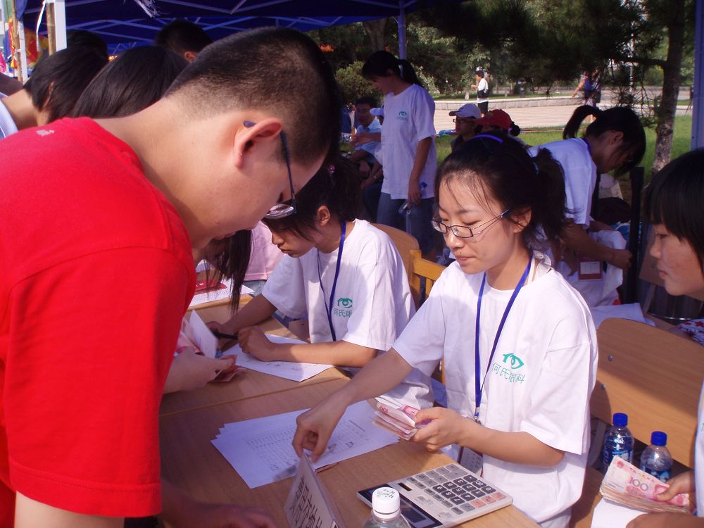 在新生接待处,我们勤工助学中心主要负责费用的收取工作,由我们中心主任关博书和副主任杨越负责。收费每人次440元,其中校园卡100元,保险费200元,校服80元,体检费60元。预计接待新生391人,实到384人,全天共计收款近十七万元。我们中心的工作从早上六点半开始展开,一直到下午的三点十五分结束。一整天的工作比较顺利,并未发生任何意外。我们中心的工作人员认真耐心地接待每一名前来报到的新生,她们宁愿放慢节奏,也要让每一位新生满意,力求做到细致稳妥。一些新生遇到问题来咨询,我们的工作人员都一一耐心解答。由于工作的细心负责,受到了员工及家长的一致好评,因此报到的新生也非常配合我们工作。烈日下,工作人员的额头上满是汗水,却不曾有一分钟的休息。一分耕耘,一分收获,我们认真负责的态度也受到院领导的表扬。