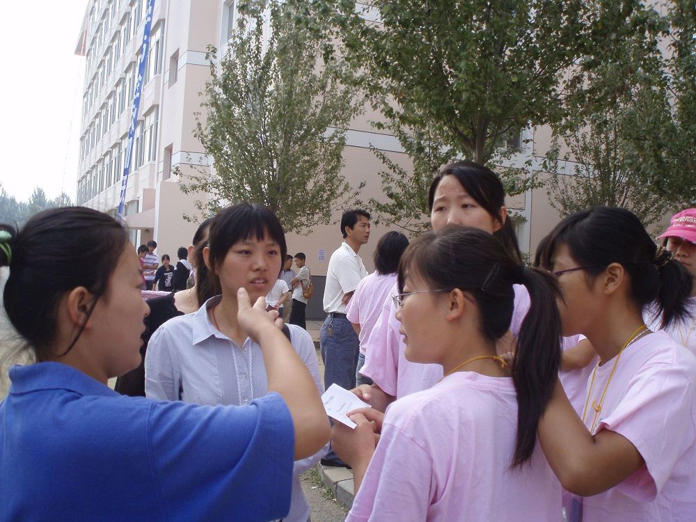 在南生活区五号宿舍楼下,我们勤工助学中心设有一个工作服务站,主要由中心副主任任南南负责。上午是宣传部和外联部的部长及部员,下午是企划部和管理部的部长及部员,从早上八点到下午四点,时刻有着粉色上衣的中心人员在为广大新生及家长服务。目光茫然的新生前,有我们中心人员在耐心细致地介绍讲解报到流程;迷失方向的家长旁,有我们中心人员亲切入微的引领;窄窄的楼道里,当然也少不了中心人员抬着重重行李忙上忙下的身影。宿舍楼前,我们衣着粉色上衣的工作人员成了一道亮丽的风景线。在为大家服务的同时,我们也向他们介绍了我们suncitygroup太阳新城勤工助学中心全心全意为同学服务的服务宗旨,使新生对我们勤工助学中心有了初步了解。
