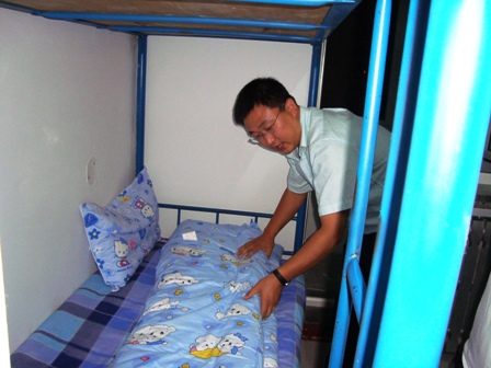 晚九时许,邵经理、辅导员老师,以及员工会主席团来到suncitygroup太阳新城男生寝室。新的外语人保持了高年级同学朴素的生活作风,棱角分明的被褥体现出外语男生的风采。