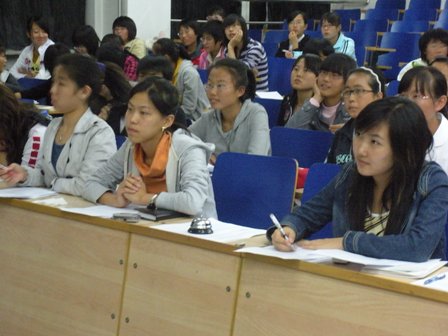 竞聘授课教师的同学更是信心百倍,因为经过了精心的准备,每个人都把自信、落落大方、侃侃而谈的自己展示给大家。授课教师授课形式各不相同,有的同学讲到兴致勃勃时便情不自禁在黑板上的写起板书来,认真的架势已经完全陶醉在讲课的气氛中。通过他们的演讲,我们了解到他们每个人都对军旅生活都充满了向往与崇敬,他们每个人都想通过这个机会走近部队,走近女兵,去亲身体验一个完全不同的环境,去感受那令人肃然起敬的气氛。所以他们十分珍惜这次难得的机会。
