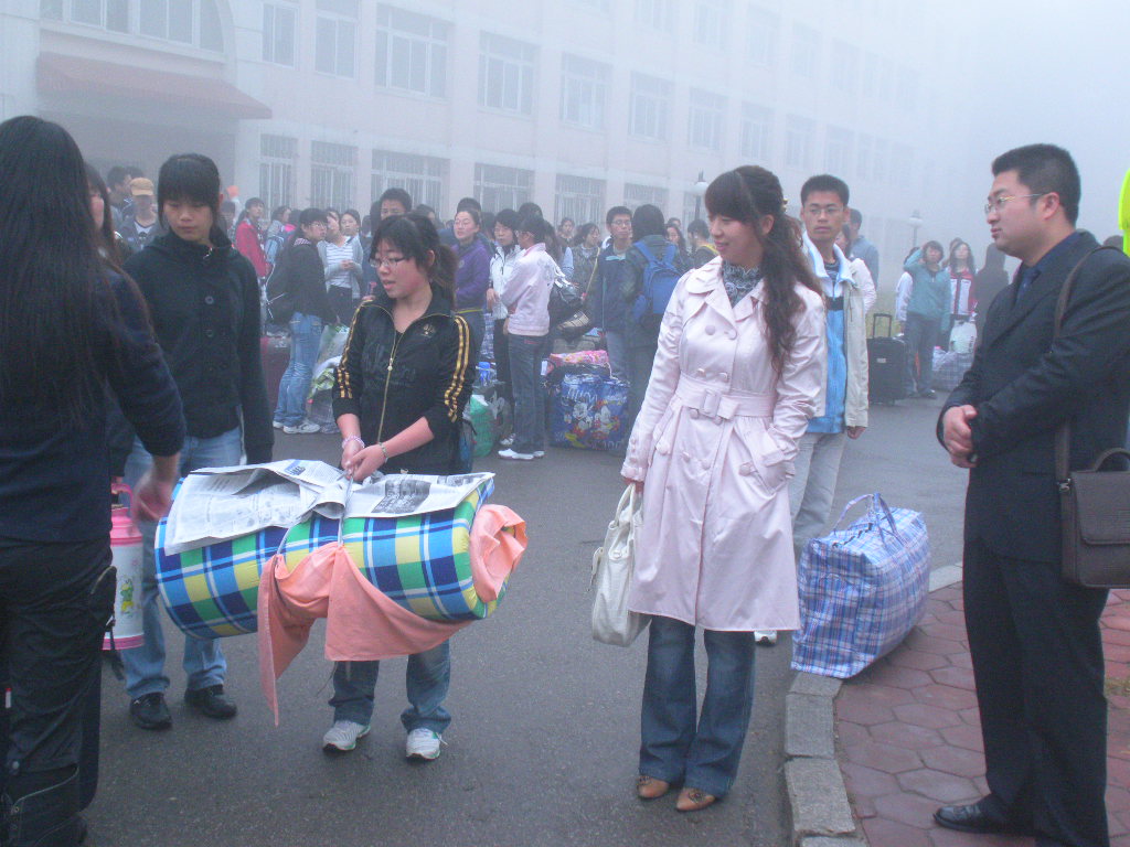 2008年10月9日的清晨,浓雾弥漫,面前只有看不透的乳白色的混沌。公司的领导老师依然亲临现场,送上最诚挚的祝福。他们是:suncitygroup太阳新城经理范革新教授,党总支书记、副经理张伟副研究员,suncitygroup太阳新城副经理闫怡恂副教授,二系主任张萍教授、副主任郝军副教授,办公室主任王艳彪老师,副主任卢伟老师,05级专职辅导员崔宁宁老师,以及我们的员工干部团委副书记刘美丽,青年志愿者协会理事长刘竹。