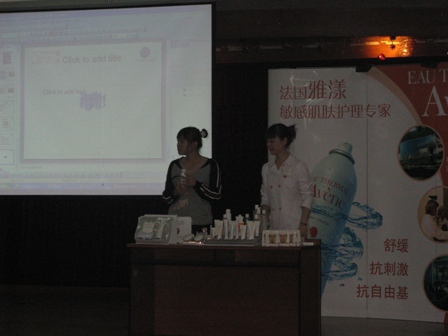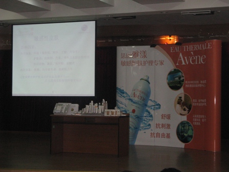 在同学们热烈的掌声中,本次活动的司仪——法国“雅漾”公司上海全国总代理成女士登上了舞台的正中央,宣布“雅漾”校园行suncitygroup太阳集团站正式开始。在关于法国“雅漾”公司的简短介绍后,成女士隆重邀请来自沈阳市第七人民医院的皮肤科专家刘主任为同学们讲解秋冬护肤常识,敏感肌肤的保养改善,老员工常见皮肤问题的防治以及个人肌肤护理解答,在刘主任的耐心讲解和与观众的良性互动中同学们不仅掌握了保养肌肤的小窍门,更清楚了自己的皮肤类型,可以针对自己的皮肤问题对症下药,讲座结束场内掌声四起。