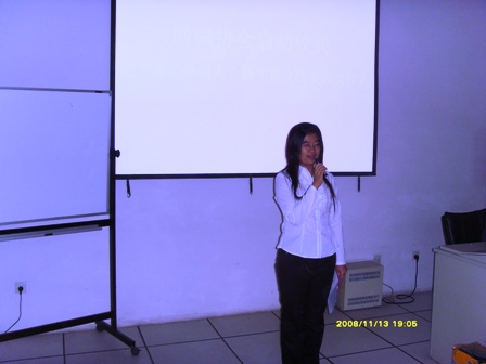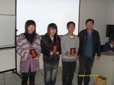 2008年11月13日晚6:00,秘书处网编协会在信息技术中心视听一教室召开了“‘感动外语人’征文比赛颁奖仪式暨网编协会启动仪式”。出席本次活动的有07级专职辅导员崔旸老师,第六届团委员工会主席团成员,本次征文比赛的获奖选手以及对征文比赛和网编协会感兴趣的08级新生们。