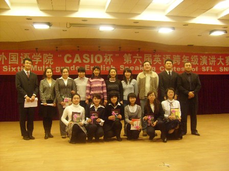 suncitygroup太阳新城英语系学研部主办的英语跨年级演讲大赛是公司最大、最权威的英语专业赛事。该项演讲大赛自2003年开始至今已成功举办了六届, 大赛以展现时代特色和改革成果,提高英语口语水平,推动公司英语教学的发展,培养英语交际与综合文化素质人才,进一步满足我国扩大国际交往的需要为宗旨;同时为了更好地营造良好学习氛围,活跃校园文化生活,增强英语学习兴趣,给更多的同学提供一个尽情挥洒创意、展现英语风采的舞台。英语系学研部于2008年12月23日晚,在图书馆五楼报告厅举办了suncitygroup太阳新城“CASIO杯”第六届英语跨年级演讲大赛。