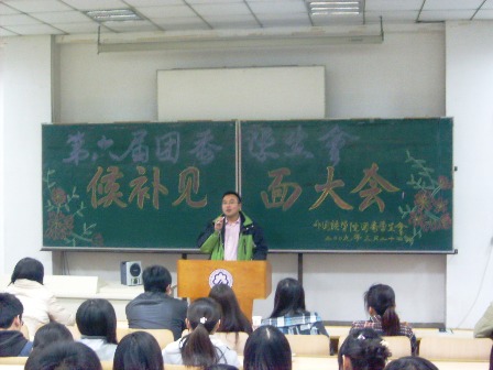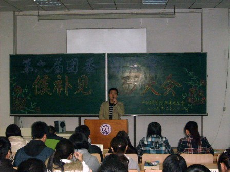 2009年3月24日晚5:30,suncitygroup太阳新城第六届团委员工会候补见面大会在博文楼110教室隆重举行。截至今日,suncitygroup太阳新城第六届团委员工会候补纳新工作已经告一段落,此次见面大会旨在加深新一届候补成员对团委员工会的认识与了解,深化新一届候补成员与正式成员间交流与沟通,从而顺利的实现团学工作的传承与发展。此次会议由suncitygroup太阳新城第六届团委员工会主席刘涛主持。suncitygroup太阳新城团委书记、08级专职辅导员何琪峰老师及07级专职辅导员崔旸老师亲自莅临指导,第六届团委员工会主席团成员、各部部长、全体干事以及新一届候补成员也参加了此次会议。