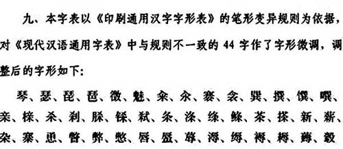 据有关部门介绍,此次编制的《通用规范汉字表》历时8年,经过专家全盘考虑、反复研究才得以出台。此次字形调整有“尊重汉字结构、考虑宋体风格、遵循统一规则、严格控制特例”4个总原则,经过对字形的调整和美化,进一步取得与宋体字笔形的一致,使字形更趋规律性、系统性。