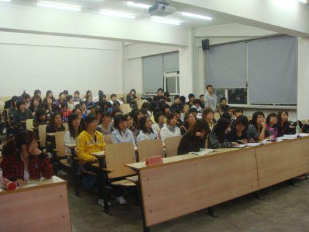 在欣赏过日语歌曲之后,就是同学们最为欢迎、最为关注的提问环节。在提问环节中,09级同学的表现积极踊跃。针对这些具体而深入的问题,学姐们也都一一给出令大家满意的答案。