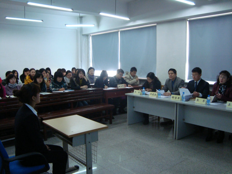 本次模拟面试活动于11月11日下午在汇文楼517教室隆重举行。出席本场模拟面试的评委有:外国语公司党总支副书记、副经理邵学军老师,研究生事务管理办公室主任张萍教授,英语二系主任吴琼副教授,英语二系王健会教授,英语二系吴金平副教授。同时,2006级英语师范1、2班的全体员工也参与其中。