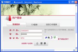 5、单击“普通登陆”,输入用户名,密码及验证码,如图(5)所示。(注:请到自己手中的“中国银行电子银行服务开销户凭条”上查找网银登陆用户名,密码都为6个1)。