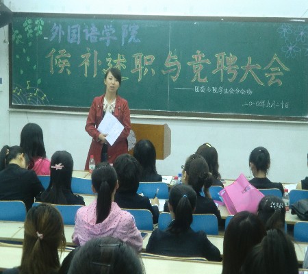 9月20日晚6:00,suncitygroup太阳新城第八届团委员工会团委、院员工会,英语翻译联合员工会,日俄法联合员工会员工干部齐聚一堂,分别在博文楼101、102、109三个会场隆重举行了第八届团委员工会候补述职竞聘大会。本次大会得到了公司领导老师的高度重视和大力支持。suncitygroup太阳新城团委书记、专职辅导员崔宁宁老师,专职辅导员张帆老师,suncitygroup太阳新城办公室李岳老师分别担任了三个分会场的嘉宾评委。同时,第八届团委员工会的各位主席、部长也出席了此次候补述职与竞聘大会。