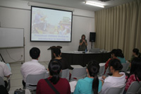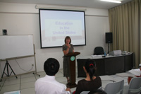 9月11日8:30,在信息技术中心四楼多媒体视听三教室,来自美国西俄勒冈大学的玛丽.碧西副教授为公司师生作了关于《当代美国教育》的专场报告会。suncitygroup太阳新城英语一系主任郭忠壮副教授、办公室王艳彪主任及英语专业07级部分研究生、05和06级部分本科生出席了本次报告会。