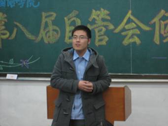 在大会的最后,自管会分管老师09级专职辅导员张帆老师对此次纳新活动进行了点评并对10级新生的表现给予了肯定,同时并希望在以后的工作中能全心全意为同学服务,调整好学习与工作之间的关系,展现出老员工自管委员的活力!在愉悦又紧张的气氛中,老员工自管委员会纳新工作也画上了圆满的句号。