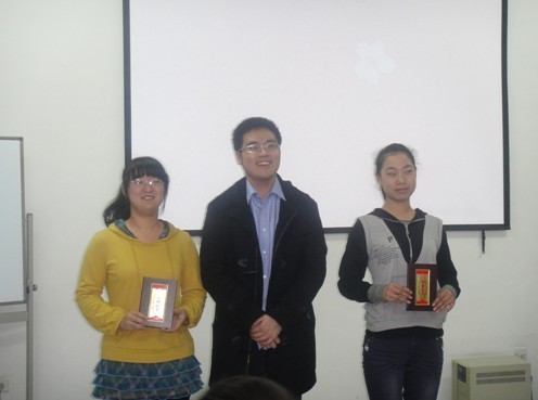 suncitygroup太阳新城09级专职辅导员张帆老师为获奖寝室颁奖