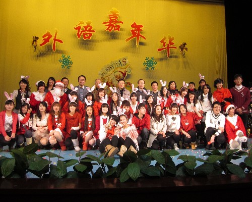 在主持人的真切祝福下晚会第一章正式开始,活泼可爱的舞蹈《铃儿响叮当》给同学们送去了圣诞的喜悦和欢乐,四语联唱进一步把晚会推向高潮。英语翻译专业活泼动感的许广慧同学、俄语大一帅气的员工吕俊俊、朱丽丽的俄语歌曲、美丽时尚的王芳为大家带来的法语歌曲以及可爱的朱豫东为大家送来的日语祝福无不洋溢着欢笑与快乐。接下来进入的抽奖环节进一步拉近了老师与同学们的距离,15名圣诞的幸运观众在老师的祝福下产生,并得到了圣诞老人送出的圣诞礼物。