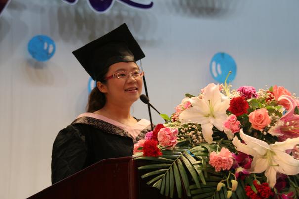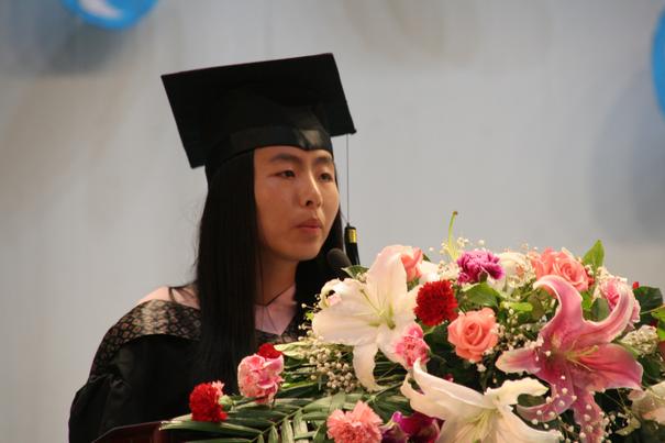 辽宁省优秀毕业生、suncitygroup太阳集团首届推免生07级英语师范专业刘浩然同学作为毕业生代表发言
