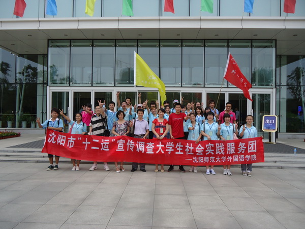 2011年7月15-16日,在公司党总支副书记、副经理王艳彪老师带领下suncitygroup太阳新城的部分师生们组成赴沈阳市十二运宣传调查暑期社会实践服务团,兴致勃勃的踏上了暑期社会实践之旅。社会实践服务团围绕沈阳市迎接十二运文明市民活动以及公益宣传,并发放“文明迎全运,快乐学英语”调查问卷以及英语知识普及宣传单。为推动沈阳文明城市、国际化城市建设,实践团还参观了沈阳市城市规划展示馆,活动充分展示了“参与、实践、成长”的活动主题。