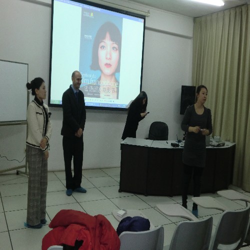 春天踏着轻盈的脚步来到了我们身边。“一年之际在于春”,春天的到来仿佛又给我们带来了新的期望、新的憧憬。为了使本学期法语协会的活动有良好的开始,增进11级新生对法国文化的了解,特此举行了本次法语协会启动仪式,以此开启新学期法语协会活动的大幕。我们有幸邀请到了法国驻华大使馆文化合作处负责人子白天先生和文化合作处推广与留学指导部负责人佟玲女士,他们为我们的同学们带来了法文原生电影。suncitygroup太阳新城团委崔宁宁老师全程参与我们的活动。