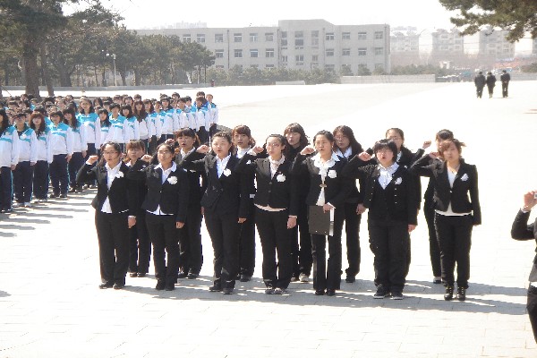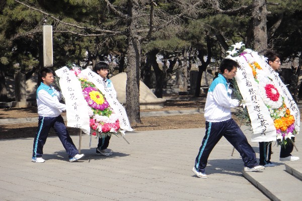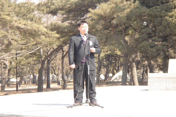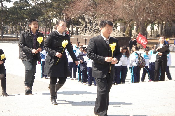 2012年4月7日上午9时,活动正式开始。参加本次活动的领导老师有:外国语公司党总支副书记、副经理王艳彪老师、团委书记2011级专职辅导员崔宁宁老师、2008级专职辅导员张博老师,2011级全体员工、09级预备党员,团委员工会的员工干部代表,大家穿着整洁的校服,怀着沉重的心情,集体乘车来到沈阳抗美援朝烈士陵园,拾级而上,迎面矗立着一座23米高花岗岩砌成的四棱锥形纪念碑,碑体正面书写着“抗美援朝烈士英灵永垂不朽”。