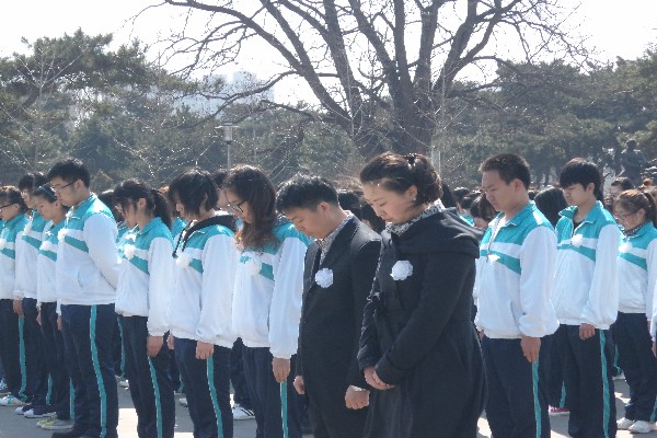 suncitygroup太阳新城2011级全体同学参加祭扫烈士活动并胸前佩带小白花