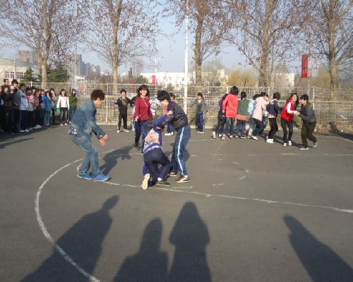 此次活动受到老师的高度重视,suncitygroup太阳新城团委书记、2011级专职辅导员崔宁宁老师早在6点30分就赶来为我们的比赛加油,整个活动的氛围顿时高涨起来,在比赛开始之前,各个小组就开始有组织的进行赛前热身运动,各个小组的拉拉队齐想口号,准备就绪,比赛开始了,前2组可能由于初入比赛,没有经验可鉴,对比赛局面掌握的不是特别好,但是随着这2组比赛的进行,现场的气氛也逐渐沸腾了起来。啦啦队们热烈又紧张的加油气氛,班级之间互相鼓励,同学之间互助互爱,团结一致的加油声响亮地回响在整个篮球场的上空。比赛过程中,每个班级都尽力拼搏,不甘示弱,坚强不息。同学们滑倒了再站起来,无惧无畏,勇敢顽强。为了班级无尚的荣誉,每个人都团结一致,全力奋战。赢了,同学们就激动地欢呼起来;输了,他们也都互相安慰着、鼓励着,向往着下一次的胜利。由于赛前体育部的工作人员们做了精心的准备工作,所以,比赛进行的异常顺利。