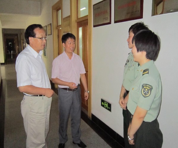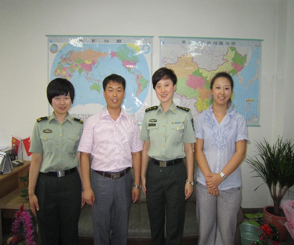 经理范革新教授、党总支副书记副经理王艳彪老师热情接待沈阳军区长话连赵丽副连长及女兵战士代表