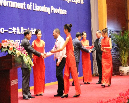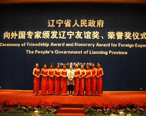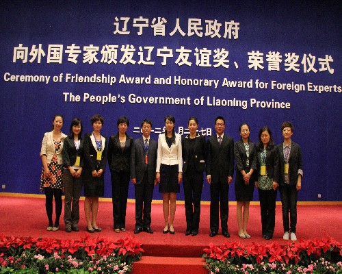 2012年9月27日,辽宁省政府在辽宁友谊宾馆举行了隆重的颁奖仪式,向为辽宁经济社会发展作出突出贡献的外国专家颁发2012年“辽宁友谊奖”和“辽宁外国专家荣誉奖”。整个颁奖仪式的同声传译及各省市领导、外籍专家的翻译工作均由suncitygroup太阳新城的老师们担任,来自suncitygroup太阳新城英语、日语、俄语及翻译专业的10位同学们担任了此次颁奖仪式外籍专家的礼仪服务工作。