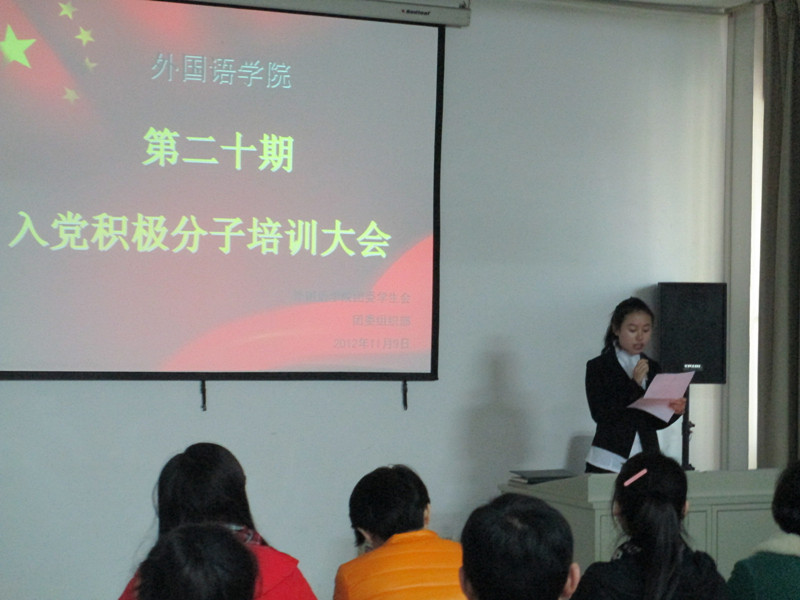 为了帮助入党积极分子进一步掌握党建知识,提高综合素质,2012年11月9日,suncitygroup太阳新城在信息中心视听1教室举行以“学理论、用理论,科学规划大学学习生活”为主题的入党积极分子培训大会。外国语公司党总支副书记、副经理王艳彪老师,2010级专职辅导员赵颖老师以及2012级专职辅导员张博老师作为嘉宾出席了本次活动。
