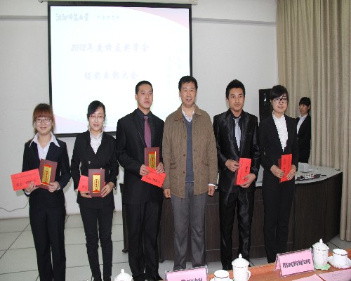 2012年11月22日,虽然窗外飘着雪花,但是员工基金会的颁奖大会却为沈师的外语人送上了一份温暖。上午十时,在信息楼视听三教室,领导、老师们与2012与2011级部分同学共同参加了2012年度员工奖学金颁奖大会。