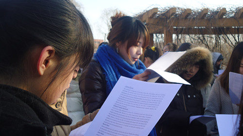 4月初,本应春暖花开,可昨天的一场雪,一下子又好像回到了冬天。在这个有些寒冷,但又十分晴朗的早晨,英语协会以及新闻播报社开展了英语晨读示范活动。公司12级英语2、3班同学积极参加了本次活动,虽然天气寒冷,但是阻挡不了我们对英语的热情,我们齐聚于此,用学习英文的热情融化了冰雪,用勤奋的品质点燃了火花。