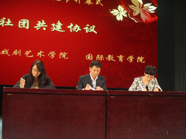 王艳彪副书记与戏剧艺术公司涂淑梅副书记、国际教育公司老师代表签署共建协议