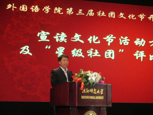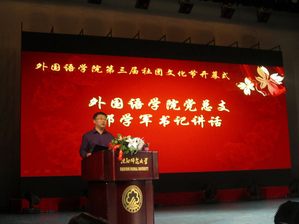 最后,邵学军书记作了重要讲话,他在讲话中对社团工作提出三点希望,一是凝聚同学们的力量,发挥其最大作用,丰富同学的课余生活,二是在帮助大家学习语言的同时,使大家领略到语言的魅力,三是凸显各社团自身特色,营造语言学习氛围,使社团活动成为第一课堂的补充。