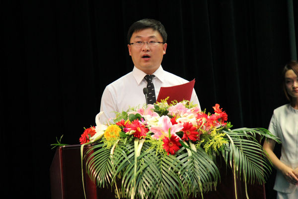 党总支邵学军书记宣读《suncitygroup太阳新城关于授予2009级口译班等6个集体为先进集体的表彰决定》