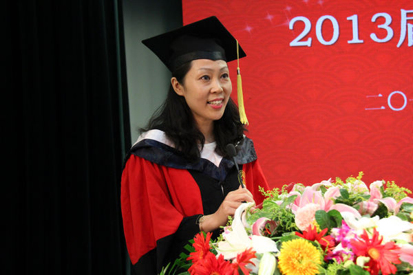 颁奖环节结束后,经理闫怡恂教授代表公司向全体毕业生讲话。闫经理首先表达了对大家的美好未来充满了期盼。同时,她希望同学们能树立正确的价值观,学会奉献自己的爱心,造福于社会及他人。在以后的日子中,她希望大家能够克服浮躁,培养自己的责任感,工作在自己擅长的领域,并且把创新当做自己的习惯。接下来,毕业生代表第九届团委员工会主席姜长海同学、2013届考取南开大学硕士研究生王雪源同学与在校生代表应用语言学专业硕士研究生王渟茜同学分别发言,三位同学的发言饱含了对公司悉心栽培的感恩之情,对母校的不舍以及对未来的美好祝福。