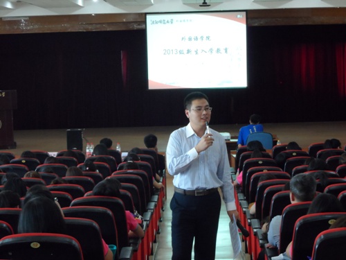 2013年9月4日,suncitygroup太阳新城2013级入学教育第一课在图书馆报告厅举行。外国语公司党总支副书记、副经理王艳彪老师,suncitygroup太阳新城团委书记,2011级专职辅导员张博老师,2013级专职辅导员张帆老师为新生们上了一堂生动有趣又意义深刻的入学教育课。