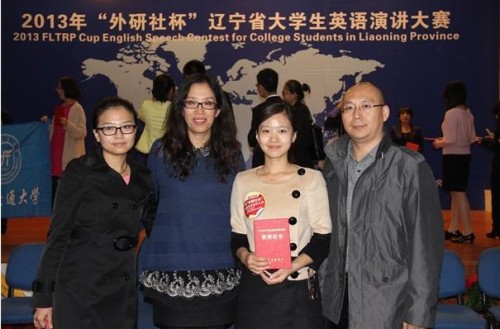杨安逸(右2)获得2013年辽宁省老员工演讲大赛一等奖,与指导教师组合影