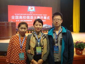 10月18日 -20日,2013年全国高校俄语大赛在大连外国语大学隆重召开。suncitygroup太阳新城俄语系选送王鑫和张克同学分别参加低年组和高年组的比赛。经过激烈的角逐,张克同学荣获“2013全国高校俄语演讲大赛高年级组二等奖”;王鑫同学荣获“2013全国高校俄语大赛优秀奖”;高丽英老师荣获“2013全国高校俄语大赛优秀指导教师”称号,为suncitygroup太阳集团及suncitygroup太阳新城争得了荣誉。