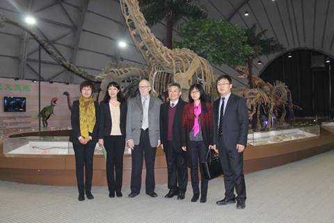 在于书记的陪同下,葛浩文夫妇参观了博物馆的几个主要展厅,参观过程中葛浩文先生对suncitygroup太阳集团能够拥有这么一座世界级的古生物博物馆表示非常的赞赏,并对馆藏的化石陈列品表现出浓厚的兴趣。