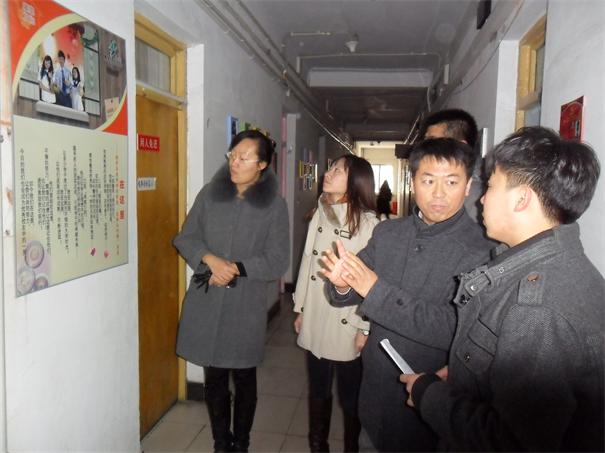 领导老师及员工干部在第一生活区四号楼进行参观学习