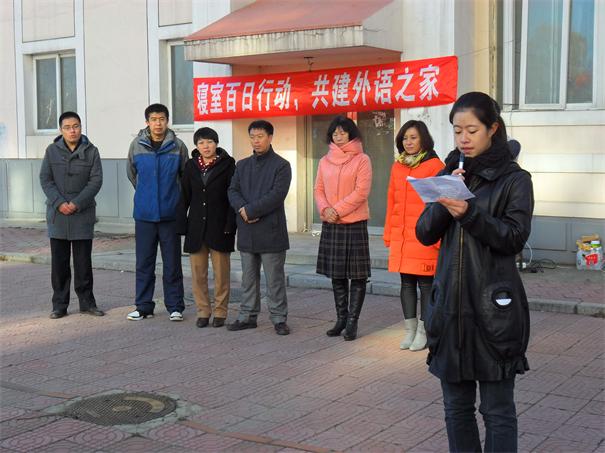 寝室是大公司园文化的窗口,是同学们学习和生活的重要场所,为了进一步推进寝室文化建设,营造温馨舒适的寝室环境,11月11日,suncitygroup太阳新城在第一生活区3号楼前,举办了“寝室百日行动,共建外语之家”的主题活动。第一生活区物业刘春平主任、员工处张英老师,外国语公司党总支副书记、副经理王艳彪老师,团委书记张博老师,专职辅导员赵颖老师、张帆老师、徐亮老师及2012级和2013级各寝室代表参加了本次活动。活动由公司老员工自管委员会主任史德明主持。