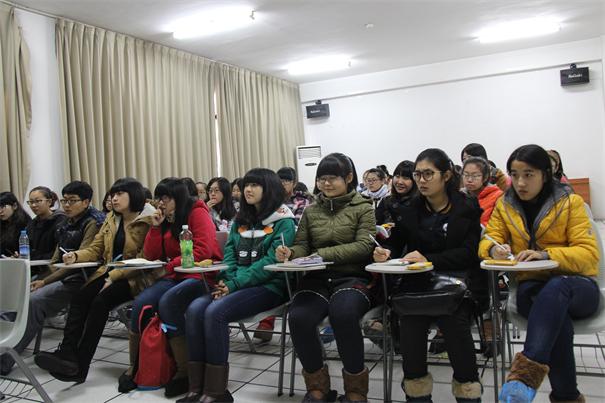 活动开始后张帆老师首先介绍了语言技能工作坊成立的意义,随后张林老师结合在不久前德国服装公司沈阳服装展中担任翻译工作的经验向同学们简要介绍了翻译专业在学习过重中应该注意的积累词汇量、拓展周边知识、读准语音语调等问题,张林老师风趣而生动的讲解使得同学们对于专业技能学习的认知、及一些关键问题的把握更为准确。接下来殷传晟同学和孙立航同学分别从参与各个级别和层面专业赛事形成扎实的专业基础从而提升语言技能运用能力以及注重细节,注重日常积累,形成良好学习习惯为切入点与同学们分享了外语学习中的一些心得。最后张帆老师为本次活动进行了总结,他从感受和启发两个角度希望全体参加本次活动的同学从老师和学长的经验中吸取精华,能够真正的学以致用、学有所用,从目前大一的基础性阶段做好铺垫,为以后进一步的专业技能提升和发展做好准备。