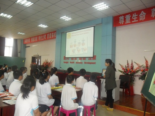 附属中学采取的是“阳光教学模式”,即老师并不作为授课的主体,而是通过员工与老师大量的互动来达到授课的目的。上课过程中我们可以看到员工与老师、员工与员工之间配合默契,整个课堂取得了良好的效果。另外,老师、同学之间相互问答,使课堂真正的变成了汲取知识的源泉。