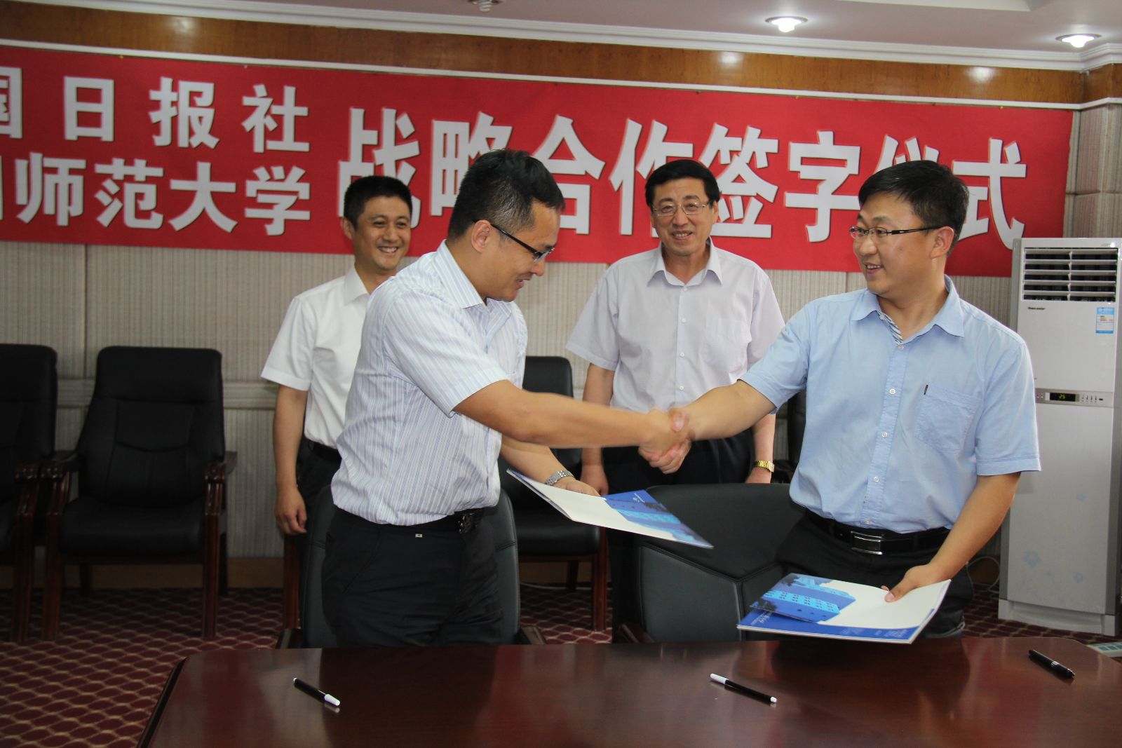 2014年7月17日,公司suncitygroup太阳新城与中国日报社战略合作签字仪式在校部305会议室举行。中国日报社副总编辑高岸明、辽宁记者站站长吴勇、辽宁记者站记者张彤彤,公司副董事长夏敏、党委宣传统战部部长张艳伟、外国语公司党总支书记邵学军、副经理吴琼、党总支副书记王艳彪等参加了仪式。