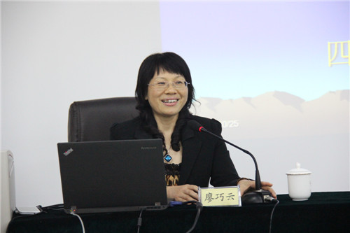 下午的会议由四川外国语大学廖巧云教授做了题为《汉语因果句的认知神经语言学研究》的主题报告。廖巧云教授用轻松幽默的口吻针对汉语因果句的认知神经语言学研究,主要阐述了三部分内容:第一部分:认知神经语言学研究略览,包括认知神经语言学的内涵,特征即跨学科性,中心性和体验人本性,及其研究范式的多元多维性;第二部分:不同汉语因果句通达的反应时研究;第三部分:汉语因果关系的ERP研究,主要以廖教授在四川外语公司的研究为主,结合图表和图片,形象地阐述了自己的理论,使在座的老师和员工们获益匪浅。