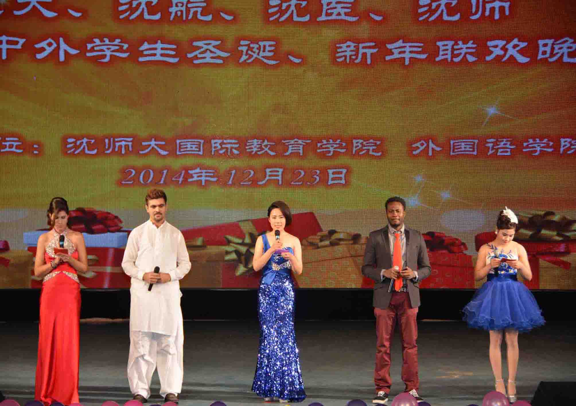 本次晚会节目形式多样,精彩纷呈,整场晚会充满了轻松愉悦的气氛,由四个公司的同学们带来的精彩表演也赢得了观众的阵阵掌声。本次晚会主持人由来自四个主办公司、四个不同国家的职工及一名公司suncitygroup太阳新城的员工共同组成。一首《新贵妃醉酒》配合着苍劲有力的软笔书法,“四海一家”的墨香飘进每一个人的心里,拉进了大家的距离,在这里,没有肤色和国籍之分,大家都带着一颗赤诚之心相聚聚在一起欢度圣诞。随后,来自辽宁大学的乐队表演掀起了整场晚会的高潮,现场气氛持续高涨,更有职工同学带来的抑扬顿挫的诗朗诵、或优美或热烈的舞蹈,还有他们带来的经典中文歌曲,足可以看出职工同学们的精心准备.