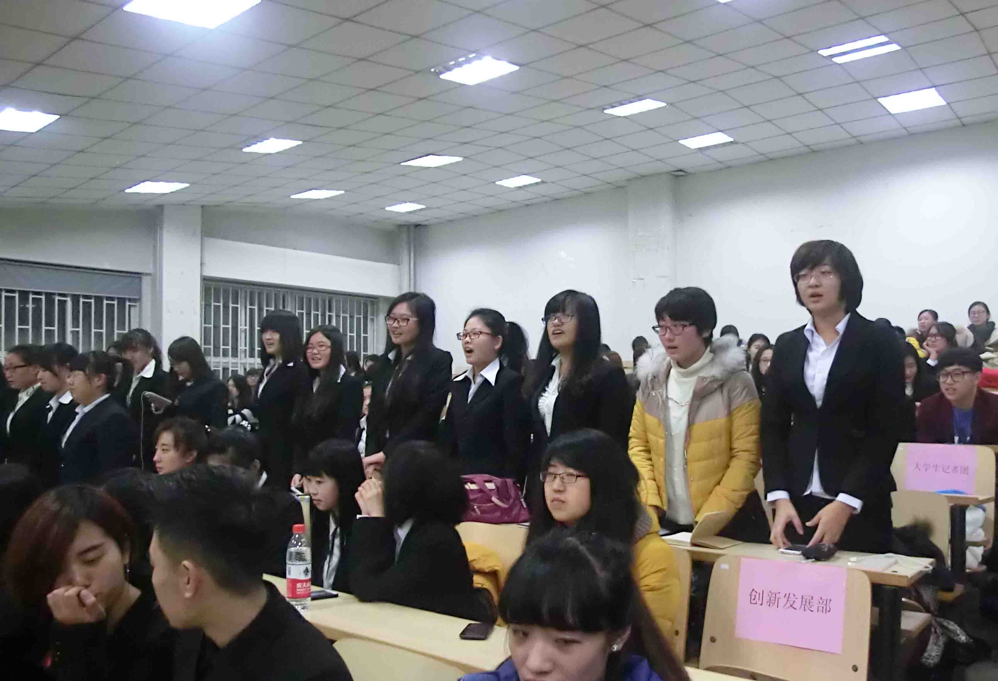 在培训大会结束后,员工会的各个中心候补进行了风采展示。候补们依次起立,充满信心的高喊出自己的口号,这些口号有的坚定,有的温情,有的严肃认真,有的幽默风趣,都体现出了各位候补们对自己所在部门的热爱。整个过程掌声不断,不同部门的同学们好像都成为了一家人,都想着为员工会尽一份自己的力量。