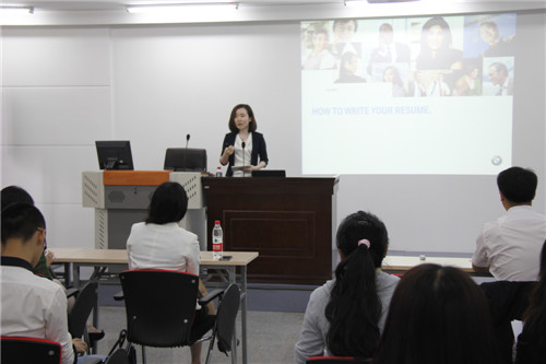 签约仪式后,华晨宝马汽车有限公司人力资源高级招聘经理金鹰女士为suncitygroup太阳新城英语专业、翻译专业员工做了《老员工求职面试与外企职员职业素养》专题讲座。