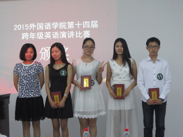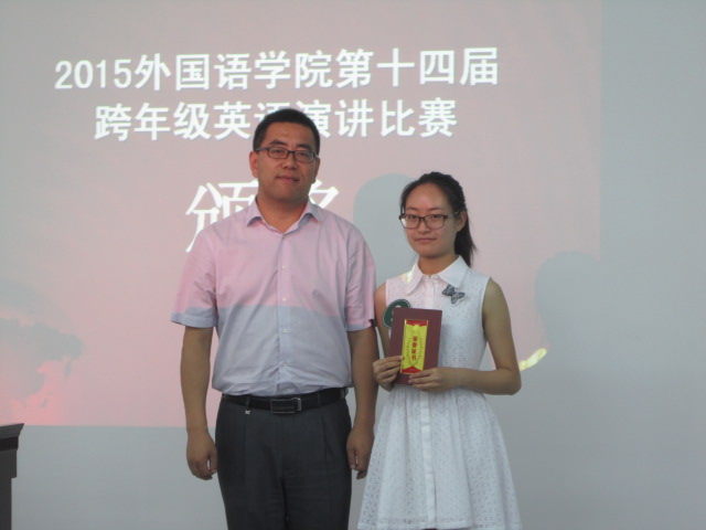 随后迎来了激动人心的颁奖环节。丛珉同学荣获了本次比赛的特等奖,张成羽教授亲自为其颁奖,并鼓励她继续努力,争取更大的进步。王亮老师随后为本次大赛一等奖获奖选手才诗雨、王中美颁奖。另外,本次比赛的二等奖获得者为黄子菲、刘佳奇、王忱,三等奖获得者为毛思越、石新月、刘阔、郭士成,优秀奖获得者为刘嘉艺、曾施琪、张文欣、张若楠,冯帆老师、张琳琳老师、Ivan老师分别为他们颁奖。