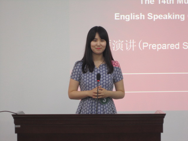 此次比赛第一环节,选手首先需观看一段英文视频,根据视频主题选择这个话题,进行三分钟的命题演讲;第二环节,由选手选择对屏幕上显示的话题进行一段即兴演讲;当然,演讲比赛需要的不仅仅是简单的复制语言,还要具有敏捷的反应速度和独立思考能力,因此,最后迎接选手们的是评委老师的提问环节,老师会根据选手即兴演讲的内容对选手进行提问,考验选手们的应变能力和表述能力。
