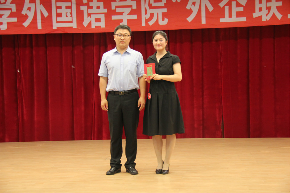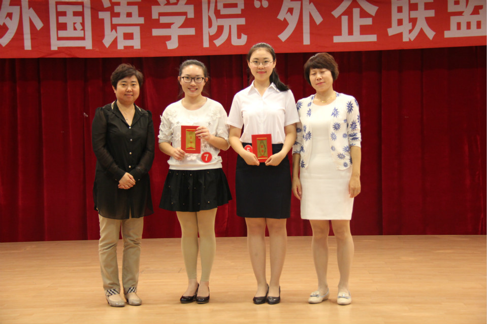 刘洁女士、刘锦梅女士为二等奖获得者王蕴莹和郭佩卓颁奖